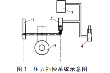 為了提高牽引機(jī),設(shè)計(jì)了壓力補(bǔ)償系統(tǒng)。整個(gè)車輪部分為浮動(dòng)式設(shè)計(jì),泵站的壓力油輸出后分成了兩部分,一部分供給了工作系統(tǒng)的油缸,另有一部分供給了壓力補(bǔ)償油缸,從下圖1中可以看出,工作油缸和壓力補(bǔ)償油缸的入口是相通的,即兩油缸入口的壓力是相等的,這樣就可以使壓力補(bǔ)償油缸輸出的力可以隨著載荷的變化而變化。