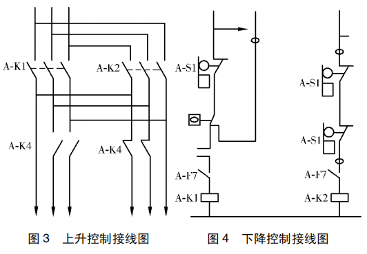 建議: 由于橋機電動葫蘆一般在檢修期使用較多,平時多為停機狀態(tài),其廠房內(nèi)震動較大,所以要注意日常維護,檢查元器件是否動作良好,有無銹蝕、接線松動等現(xiàn)象,并及時處理。更改其上升/下降控制圖,如圖 5。