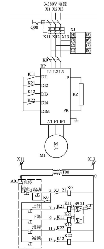 能提高工作效率:在空載下,可將起升速度子啊1倍額定速度與1.5倍額定速度之間任意設(shè)定,提高空載下的運行速度,以提高工作效率。變頻器控制系統(tǒng)工作原理如下圖: