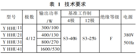 該產(chǎn)品在電動(dòng)環(huán)鏈葫蘆中為裝入式封閉結(jié)構(gòu),共有四個(gè)規(guī)格組成的一個(gè)系列,根據(jù)電動(dòng)環(huán)鏈葫蘆工作特性,用戶提供技術(shù)要求,如表1所示: