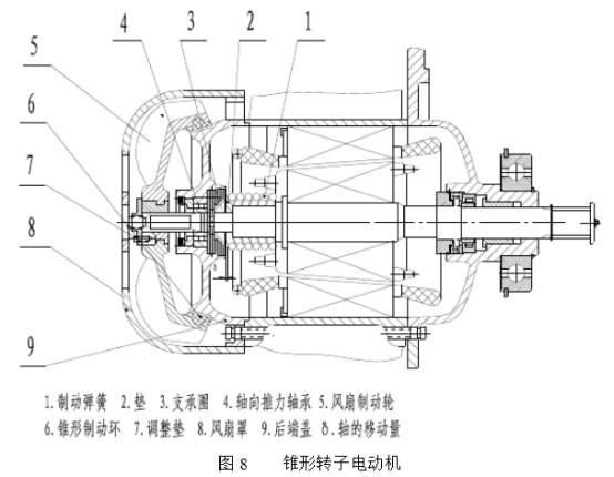 電動葫蘆有鋼絲繩電動葫蘆和環(huán)鏈電動葫蘆之分,一般鋼絲繩電動葫蘆會采用錐形轉(zhuǎn)子電動機,具有產(chǎn)生軸向磁拉力的特點。電機借助軸向磁拉力和彈簧及風(fēng)扇制動輪的作用使其起動和制動。電動葫蘆結(jié)構(gòu)下圖:
