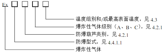 防爆標(biāo)志應(yīng)符合GB3836.1或GB12476.1的規(guī)定,防爆標(biāo)志采用下述方式: