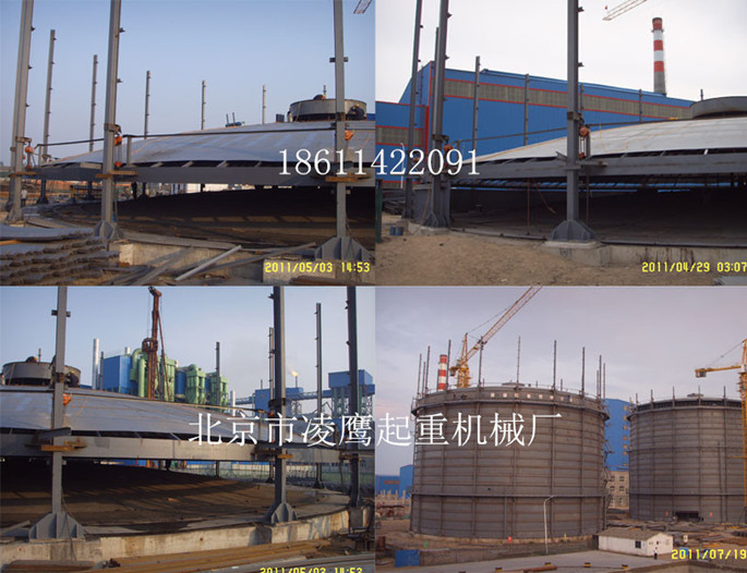 群吊電動(dòng)葫蘆群控倒裝提升技術(shù)在大型儲(chǔ)罐施工運(yùn)用中應(yīng)保證電動(dòng)葫蘆的同步起升:沒(méi)提升1/3板高左右時(shí),應(yīng)停止提升,檢查所有葫蘆提升是否同步,上升受力是否均勻。無(wú)不同步及受力不均等情況,方可繼續(xù)提升。如果出現(xiàn)起升不同步、受力不均狀況,則應(yīng)分別單獨(dú)調(diào)整滯后葫蘆,使其與其他葫蘆處于同等高度、同樣受力狀態(tài),以避免發(fā)生意外。調(diào)整好后即可再次同時(shí)提升,直至完成一帶板的提升。