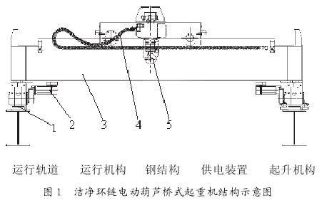 潔凈環(huán)鏈電動葫蘆橋式起重機主要由起升機構(gòu)、運行機構(gòu)、受力結(jié)構(gòu)件、供電裝置等部分組成。