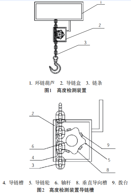 低速環(huán)鏈電動(dòng)葫蘆又稱低速環(huán)鏈電動(dòng)提升機(jī),主要應(yīng)用在附著式升降作業(yè)安全防護(hù)平臺(tái)、船體、儲(chǔ)罐等大型結(jié)構(gòu)件的起吊作業(yè)中,一般為幾個(gè)乃至數(shù)十個(gè)群吊使用。傳統(tǒng)的低速環(huán)鏈電動(dòng)葫蘆沒有高度檢測(cè)裝置,在其群吊過程中,由外部重量傳感器和控制箱通過控制各個(gè)低速環(huán)鏈電動(dòng)葫蘆的重量差來避免位移差過大,或者通過外部鏈輪鏈條機(jī)構(gòu)實(shí)現(xiàn)起升速度測(cè)定。
