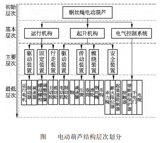 從上圖可以看出鋼絲繩電動葫蘆主要分為運行機構(gòu)、起升機構(gòu)和電氣控制系統(tǒng)三大部分,上圖中對鋼絲繩電動葫蘆每一個結(jié)構(gòu)層次進行了細分。鋼絲繩電動葫蘆的配件都在上面有所展示。了解鋼絲繩電動葫蘆的結(jié)構(gòu)層次可以更好的操作和維修鋼絲繩電動葫蘆。