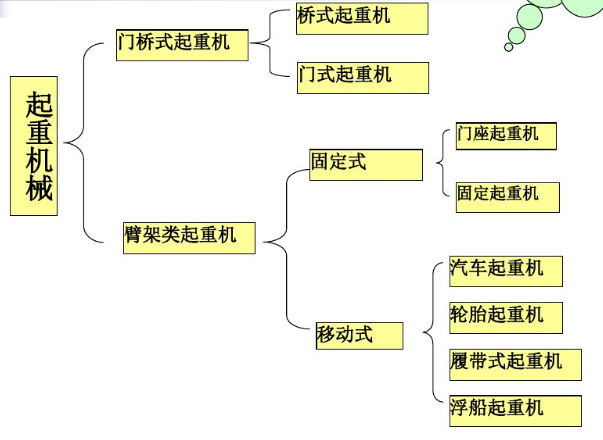 臂架型起重機(jī)分為:懸臂起重機(jī)、桅桿起重機(jī)、甲板起重機(jī)、塔式起重機(jī)、門座起重機(jī)、浮式起重機(jī)、流動(dòng)式起重機(jī)等。