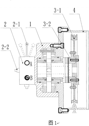 (3) 如圖1所示,集成閥塊2主要由三位四通換向閥2-1、平衡閥2-2組成,其中2-1的功能是控制非圓輪系液壓馬達(dá)1的旋轉(zhuǎn)方向,平衡閥2-2的功能是保持1-1運(yùn)行平穩(wěn),并通過限制其供液系統(tǒng)的高工作壓力來實(shí)現(xiàn)對本裝置的大輸出力進(jìn)行限定。