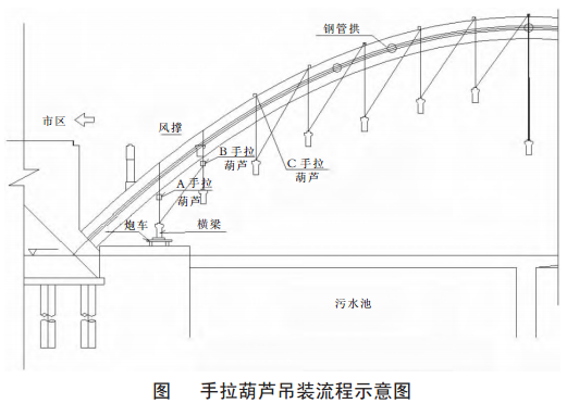 拱橋在建立的過程中,需要把橋架起來,很多時(shí)候是要用到手拉葫蘆的。很多人可能沒有親眼見過實(shí)際的操作,下面北京凌鷹根據(jù)手拉葫蘆吊裝橫梁施工流程示意圖進(jìn)行闡述。